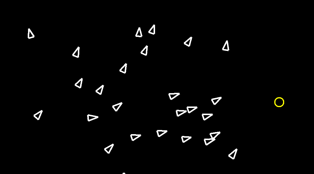 This projects is a simulation of many agents called "Boids". While each agent (fish) acts on its own, together, they create emergent behaviors such as swarms and faster responses to hazards and rewards. Each agent intelligently navigates away from enemies, towards food, and in accordance with the three rules outlined by Craig Reynolds: separation, alignment, and cohesion. To showcase these behaviors, this program allows users to interact with the simulation by placing food and enemies with the mouse. This project is a refined, 0-player version of the game I made 4 years prior, titled Swarm. This project was made using, C++, Bash, and TKinter.